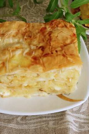 Тиропита (греч. τυρόπιτα) — традиционный греческий пирог с сыром, обычно с фетой, но кипрский вариант часто готовят с халлуми и мятой, что придаёт ему уникальный вкус и характерное сочетание солёного и свежего. Классическое тесто фило используется не только для сладких, но и для солёных пирогов, формируя множество слоёв, что напоминает баклаву — восточное лакомство, перешедшее через Византию и Османскую империю в кухни народов Балкан, Греции и Ближнего Востока.
