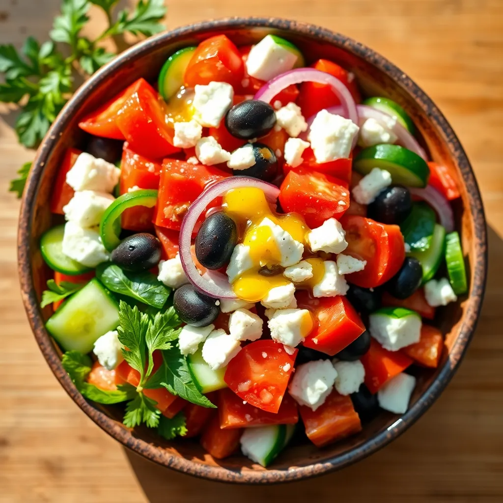 Забудьте про салатные листья и мелко нарезанные овощи. Настоящий греческий салат — это сочные, крупные куски, которые тают во рту. Это гимн лету.